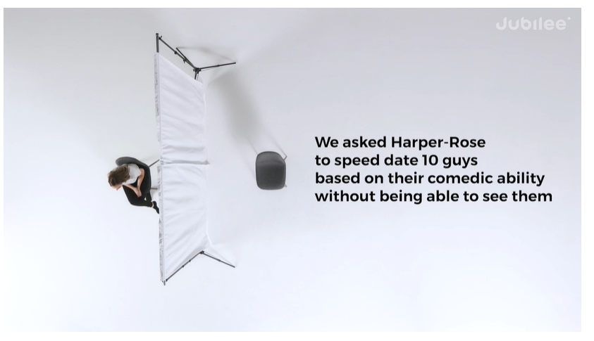 EP.7과 비슷하게 스크린 뒤에서 이상형을 찾는 내용인데, 이번엔 Harper Rose라는 여자 출연자가 남자들의 개그만 듣고 데이트 상대를 고르는 에피소드이다.