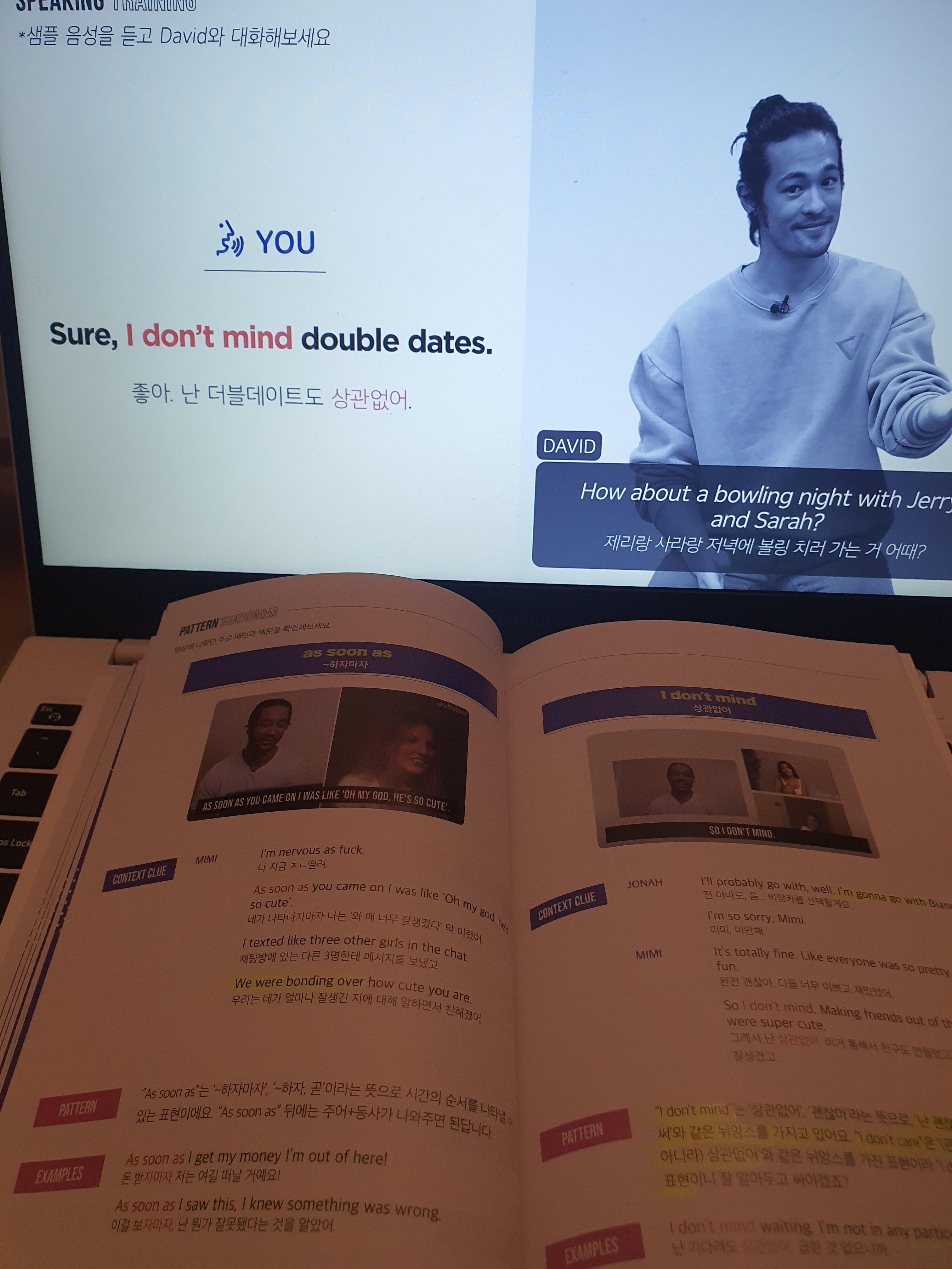 컬쳐키워드와 익스프레션 쉐도잉에서 주요 표현을 배우고, 그 단어나 표현이 나오는 장면을 두세번 반복해서 듣고 따라하고, 마지막으로 응용 문장까지 롤플레잉으로 연습하면 오늘도 학습 완료!!!