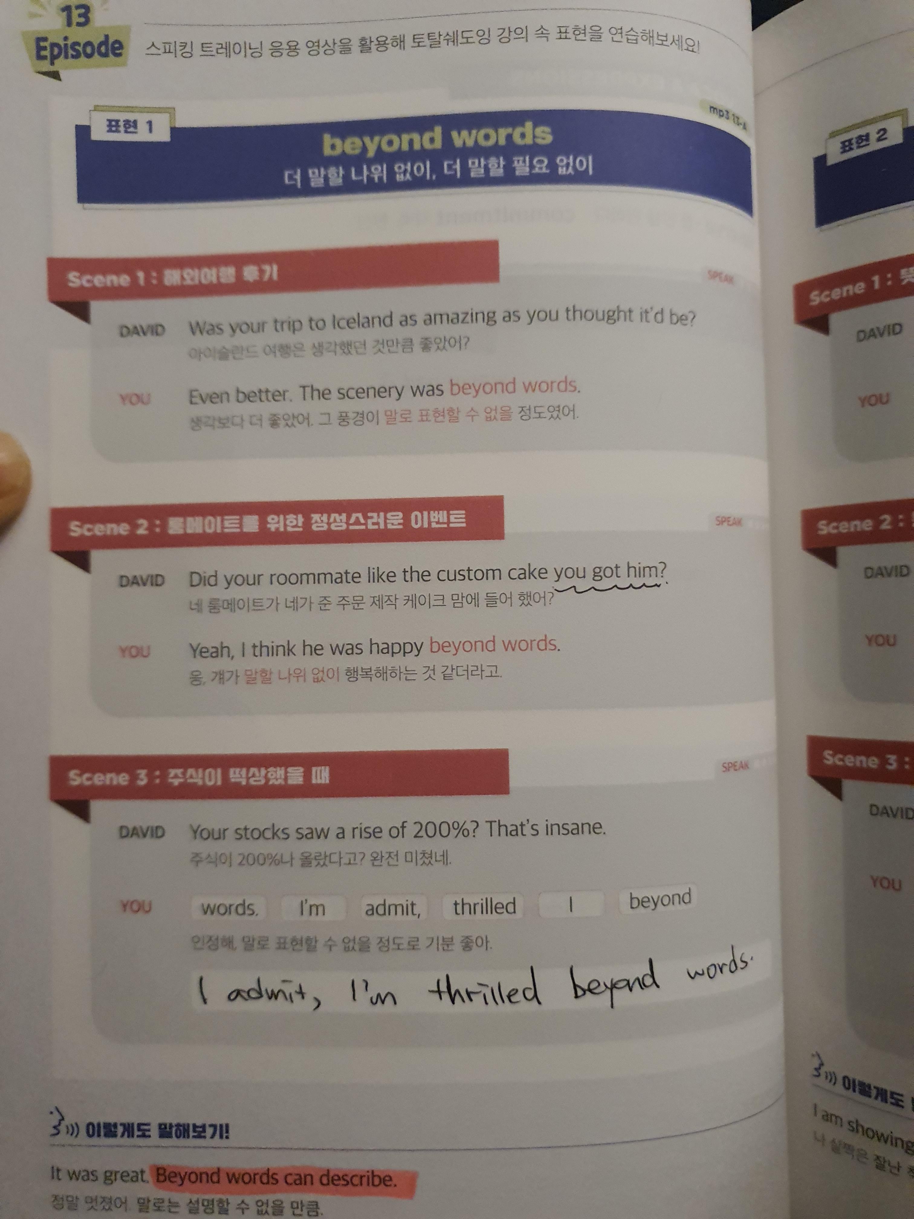 스피킹 트레이닝에 있는 표현마다 빈칸 채우기와 자연스러운 구어체 표현 익히기!!