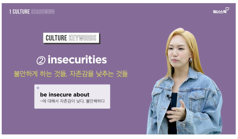 - insecurities 불안하게 하는 것들 , 자존감을 낮추는 것들